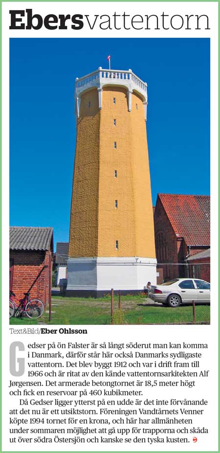| Den ledande branschtidningen VA-tidskriften Cirkulation har en serie om vattentorn under rubriken Ebers vattentorn. Här presenteras bild och text på intressanta vattentorn i världen, utom Skåne och Sverige. Materialet återges senare på denna sajt, men bäst är att läsa tidskriften. |
