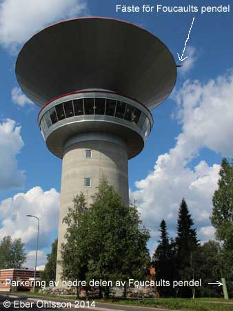 ![]() © Eber Ohlsson 2014 Skylt på vattentornet som visar principerna för Foucaults pendel. |