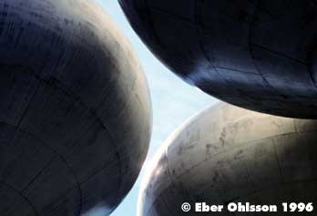 ![]() Vy från vattentornets utsiktsplats mot de sfäriska vattentornen vid Honganpalo. |