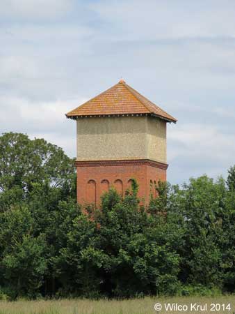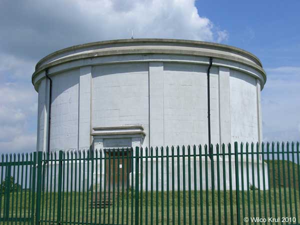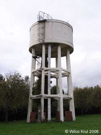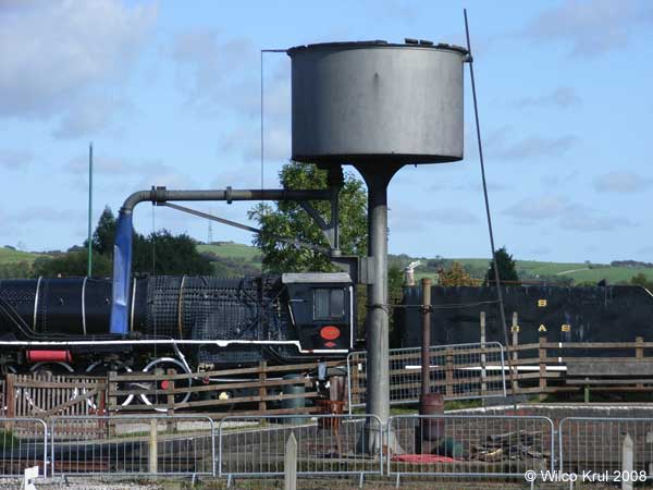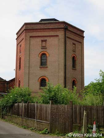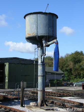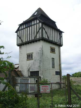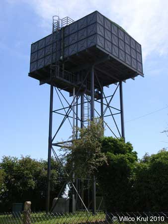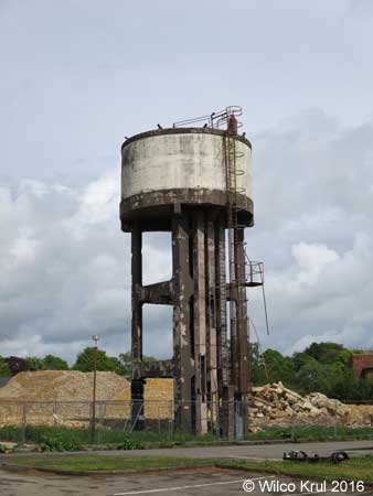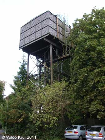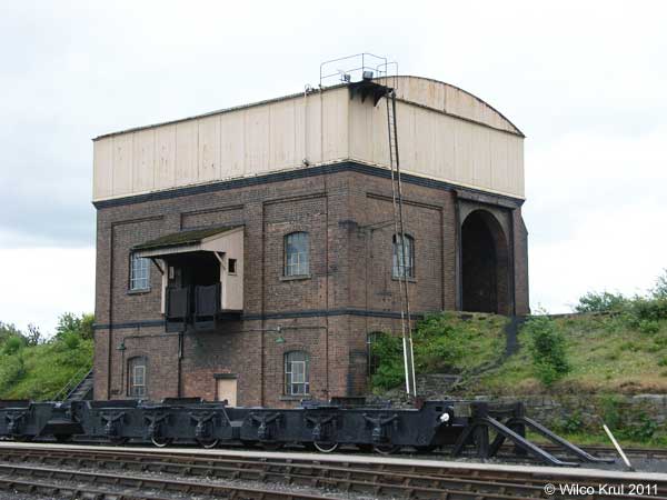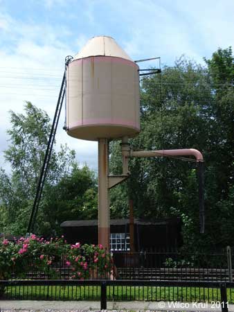 | The water tower in Didcot is not only a water tower (with a 74,000 gallon tank), but it’s also a coal stage. A coal wagon would be pushed up the embankment by a locomotive into the brick building under the water tank. There the coal would be unloaded into small wheeled tubs. The tubs were then pushed onto a ramp at the front of the coal stage and tipped up to allow the coal to fall into a locomotive tender. /Wilco Krul |