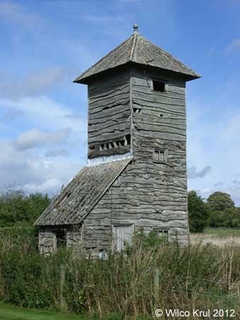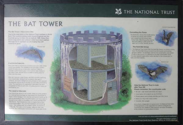 | The water tower on Toy’s Hill was converted to a hibernation site for bats in 1998. A square two-storey inner section was created and bat boxes were hung inside. The original door was blocked up and a grille was added, which gives bats (but no other animals) access to the tower. Bats hibernate there from November to March. |