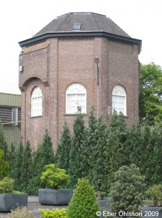 | This water tower/reservoir building was designed by Dutch railway architect G.W. van Heukelom. It was built circa 1914 and had three rectangular iron reservoirs, each with a capacity of approximately 70.000 liters. The building was blown up by German soldiers on 17 September 1944. (An almost identical water tower/reservoir building, also designed by G.W. van Heukelom, was built in Maastricht.) /Wilco Krul |