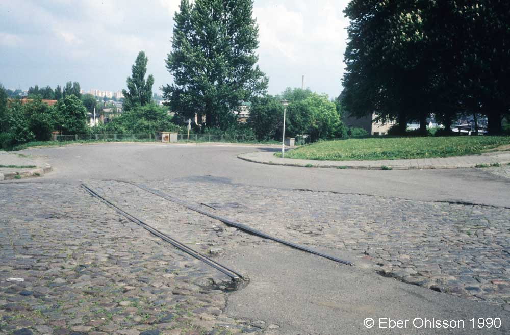 Efter Alter Markt hade Linje 4 gått i Altschmiedesstraße och vid Nikolaikirche kom spåren åter i dagen. Här hade Linje 4 vackert rundat kyrkan på dess västsida.